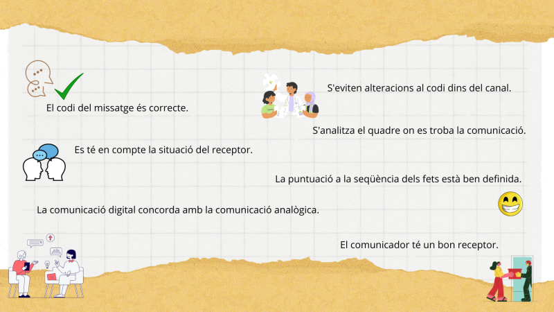 La comunicació ha de ser adequada, curta, clara i entenedora per la persona que rep la informació.